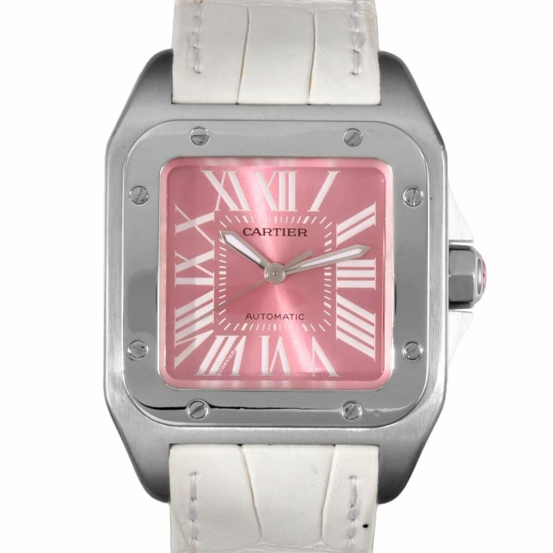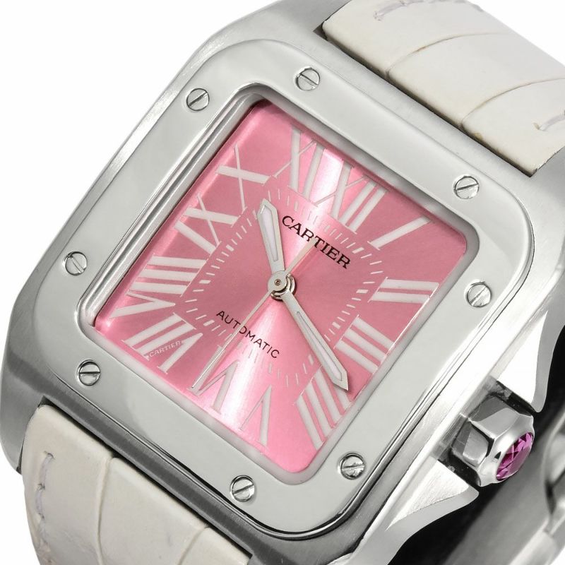 - カルティエ Cartier W20133X8 サントス 100 MM 腕時計 ピンク文字盤 SS 限定モデル ユニセックス ボーイズ【中古】