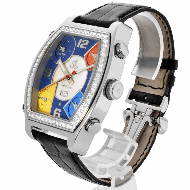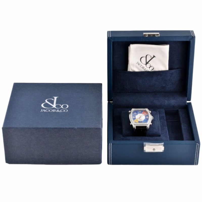 3. ジェイコブ JACOB&Co. 5タイムゾーン ダイヤベゼル 腕時計 ブルー シェル文字盤 トノー メンズ【中古】