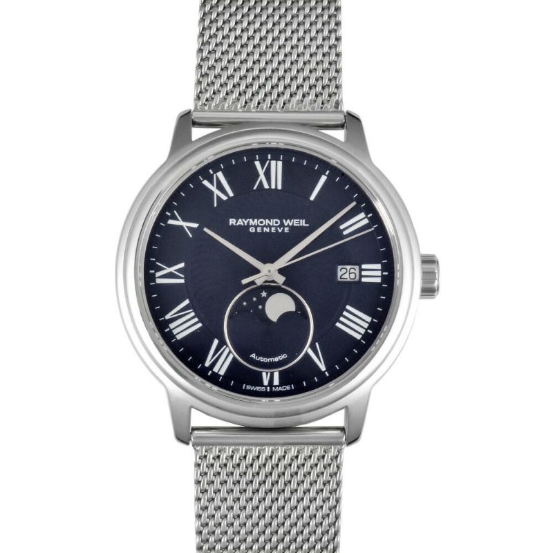 3. レイモンドウェイル RAYMOND WEIL マエストロ ムーンフェイズ デイト メンズ 自動巻き 時計 SS ネイビー文字盤 2239M-ST-00509【中古】