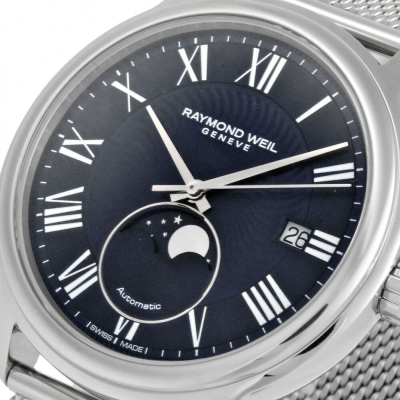 5. レイモンドウェイル RAYMOND WEIL マエストロ ムーンフェイズ デイト メンズ 自動巻き 時計 SS ネイビー文字盤 2239M-ST-00509【中古】