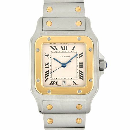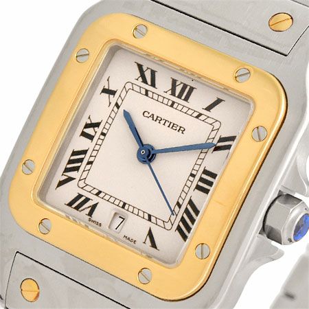 5. カルティエ Cartier サントス ガルベ LM SS×YG メンズ 時計 クォーツ アイボリー文字盤 W20011C4【中古】