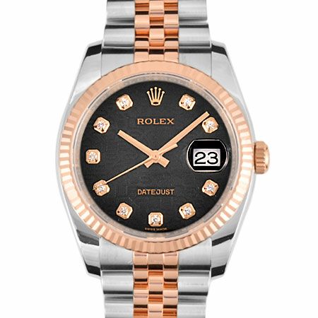 - ロレックス ROLEX デイトジャスト 116231G 10Pダイヤ K18PG×SS コンビ ランダム メンズ 自動巻き 時計 ブラックコンピューター文字盤【中古】