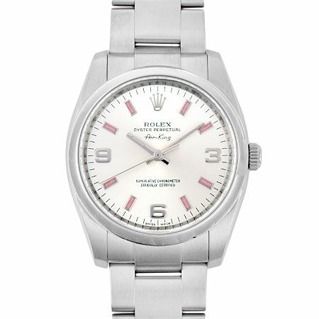 - ロレックス ROLEX エアキング 114200 SS M番 メンズ 自動巻き 時計 ピンクバーインデックス シルバー文字盤【中古】