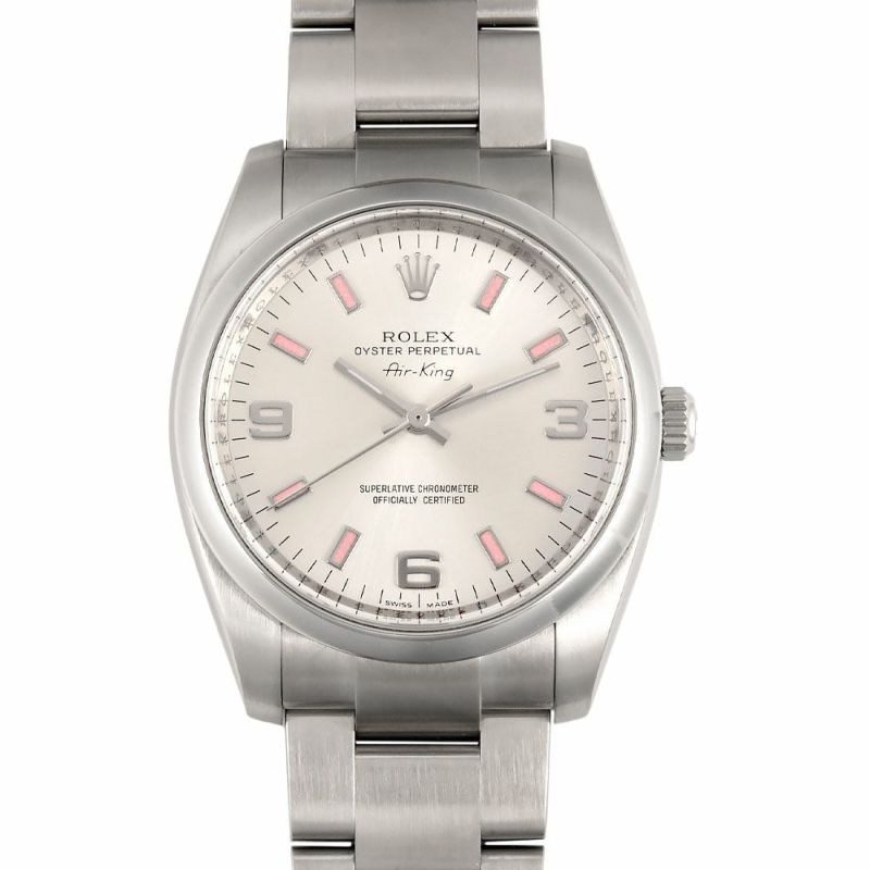 - ロレックス ROLEX エアキング 114200 SS ランダム メンズ 自動巻き 時計 ピンクバーインデックス シルバー文字盤【中古】