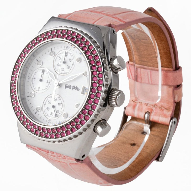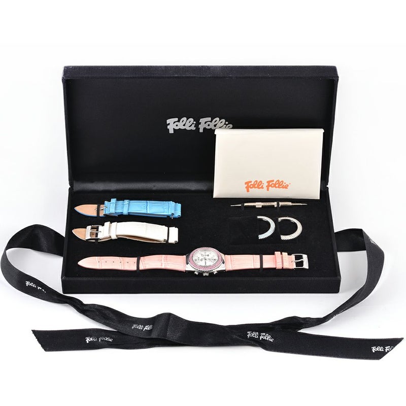 3. フォリフォリ Folli Follie ラインストーン 腕時計 シルバー文字盤 クロノグラフ デイト チェンジベゼル チェンジベルト レディース【中古】