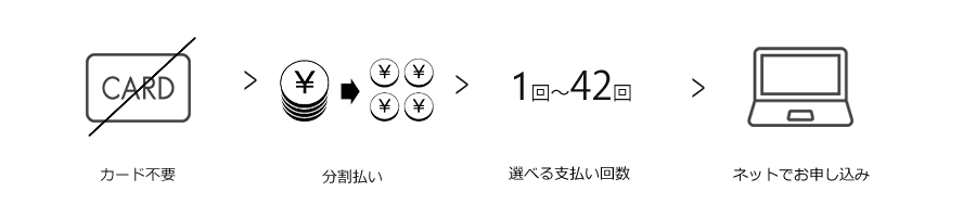 クレジットカードをお持ちでない方も、分割払いが可能な決済方法です。パソコン、スマートフォン、タブレットなどから簡単にお申込でき捺印も不要です。