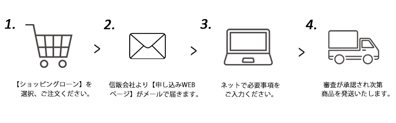 1 ご注文の際、お支払い方法にて「ショッピングローン」をお選びください。必要であれば頭金のご入力をお願いいたします。